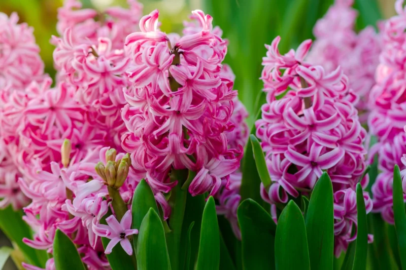 Hyacinth flowers feature long, bright green leaves and bell-shaped petals. These blooms come in a wide range of colors, including white, blue, purple, pink, and red. Their sweet floral fragrance is incredibly strong, making them a favorite for garden beds, pots, and indoor displays. Hyacinths also pair well with other spring-blooming bulbs, such as tulips and daffodils, creating a visually stunning and aromatic combination in gardens.